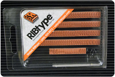 About RIBtype®: An economic and versatile DIY rubber stamp system, RIBtype characters lock into handle stamps and other devices so you can make your own stamps and change them as needed. Excellent for part marking, date